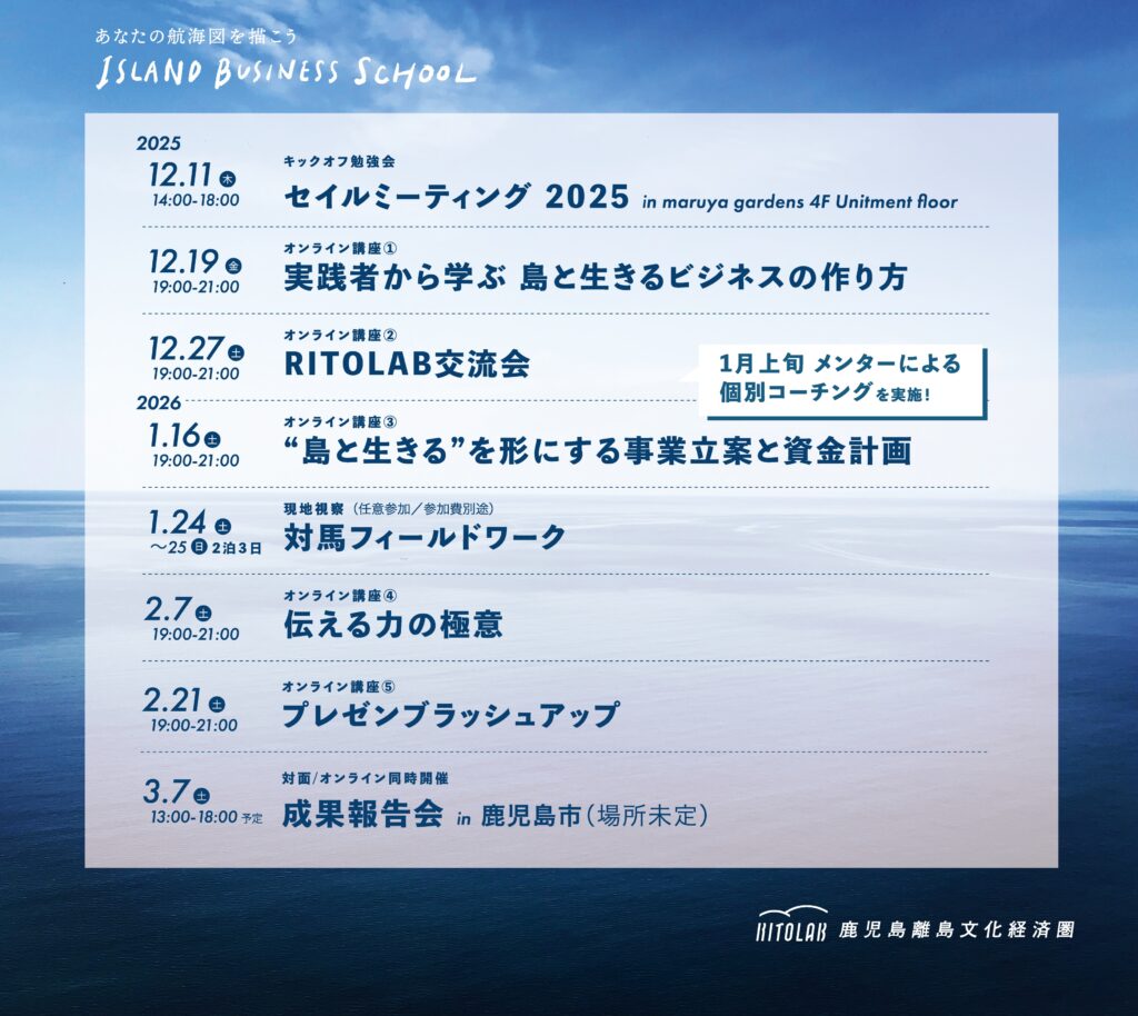 ●特典:個別コーチング、現地フィールドワーク(長崎県対馬)、最終報告会(鹿児島市)への参加